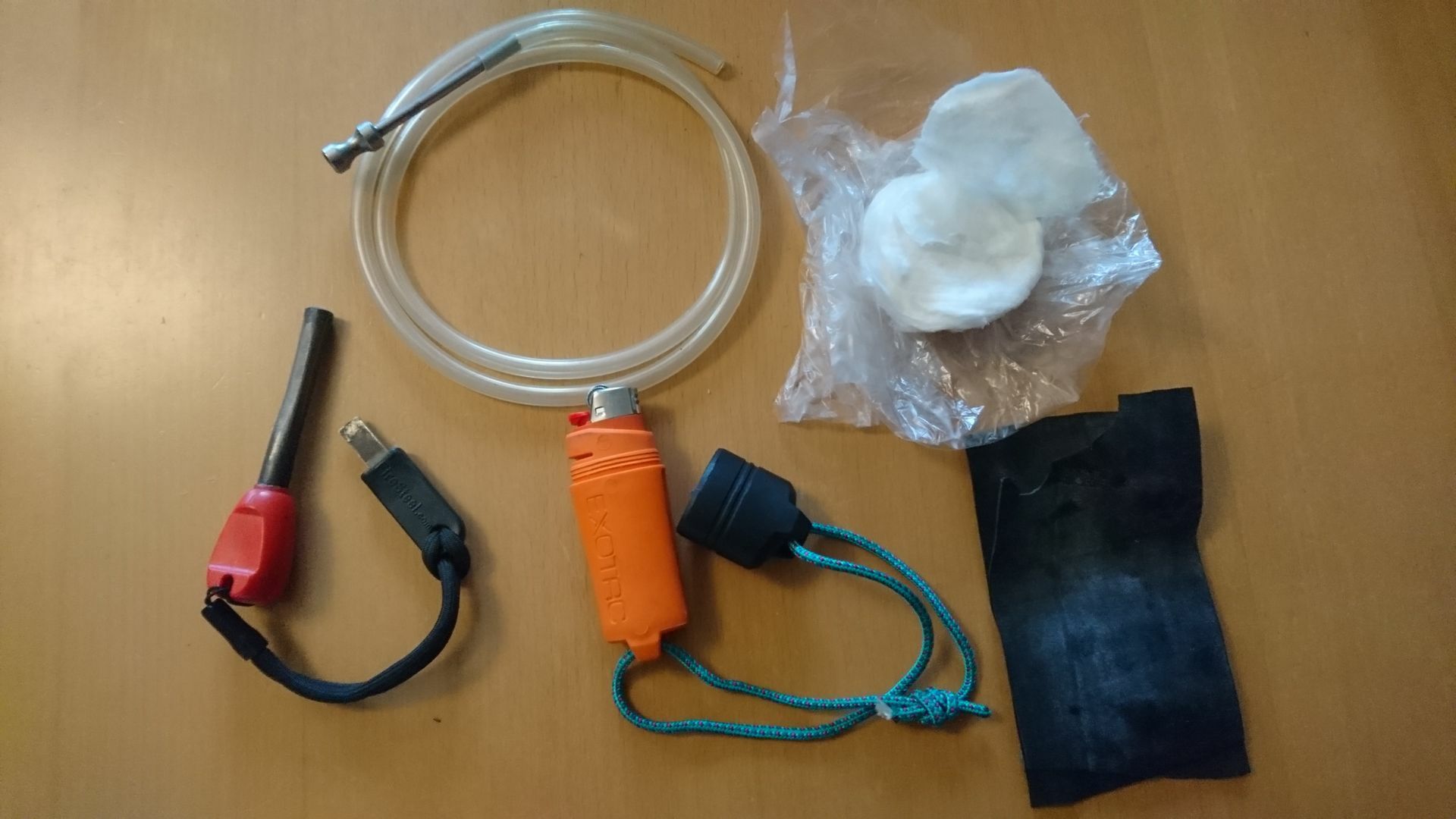 Ein wasserdicht verpacktes Feuerzeug mit Reibstein