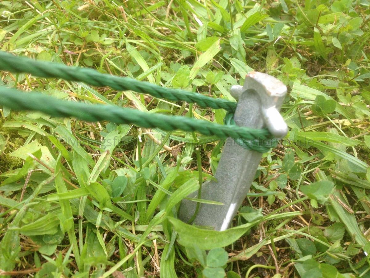 Jetzt noch die Heringe eingeschlagen. Da hier ordentlich Zug drauf kommt, sollte man möglichst große Heringe verwenden. Viel hilft viel.