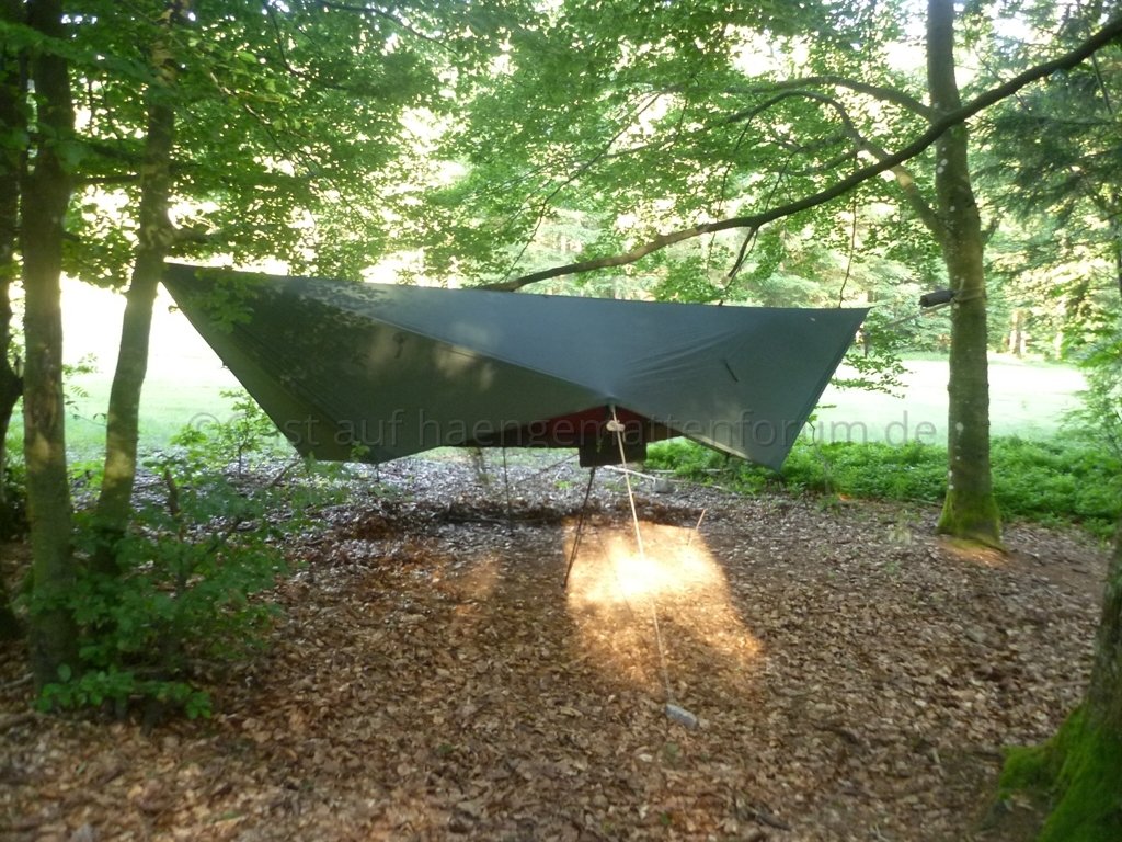 Leider ist das GoLite Poncho Tarp für meine selbst geschneiderten Hängematten (alle mindestens 335cm lang) zu kurz.