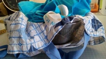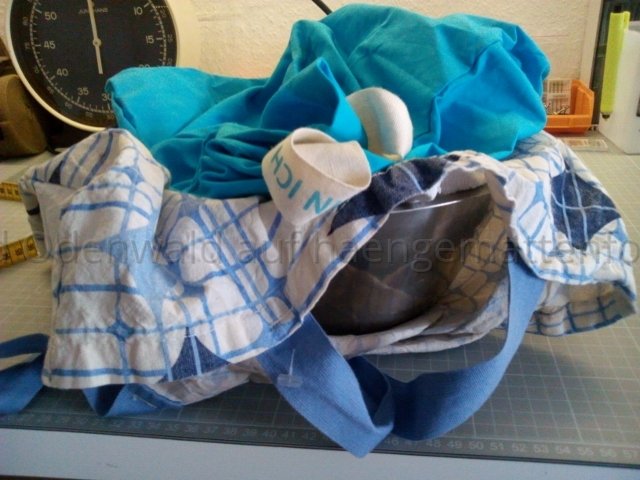 Was ich auch gefunden habe, ist eine Edelstahl Schüssel mit Handtüchern darin sowie einem Stoffbeutel drauf.