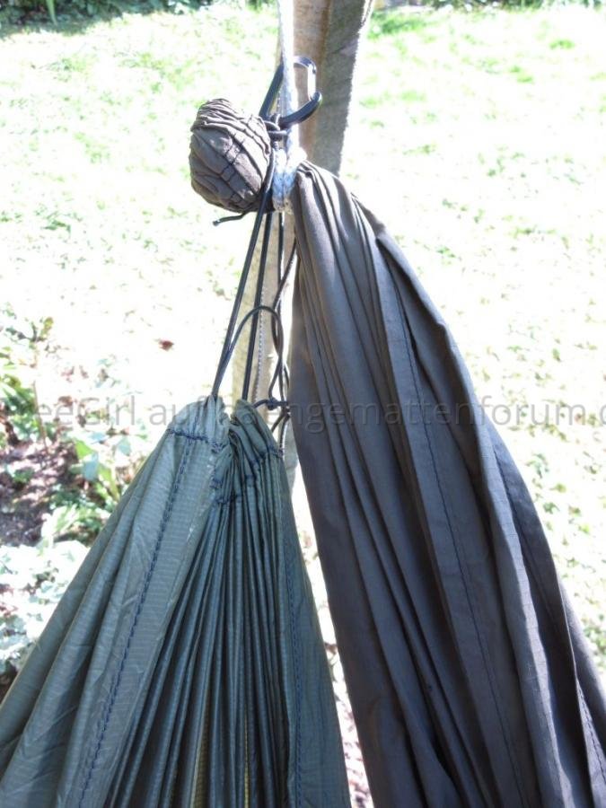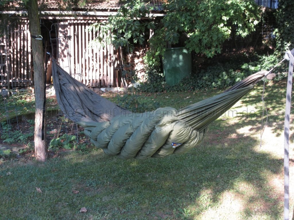 - Die Gummikordel üben einen deutlich spürbaren Druck aus und engen den Schläfer etwas ein. Dadurch ist die Liegeposition nie so gestreckt wie in einer Hängematte ohne Underquilt.