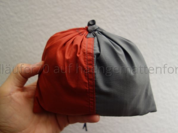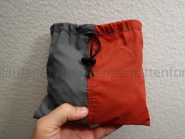 Doof ist: Ich habe aus den Stoffresten spontan gleich noch einen schönen Packsack genäht. Die Hängematte hat darin wunderbar Platz, nur für die Aufhängung wird es eng. Das würde dafür sprechen, eine Variante zu wählen, bei der die Aufhängung separat versorgt wird. Oder noch besser: halt wirklich im gleichen Packsäckchen Platz hätte :)