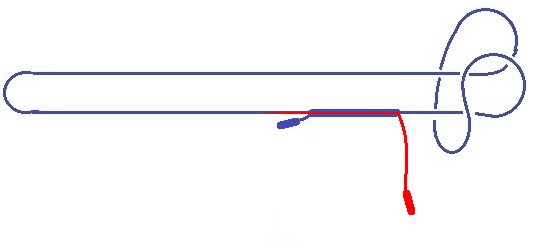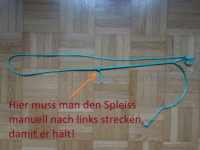 Meine Idee ist jetzt, einen verstellbaren Loop zu spleißen. Der hätte den vorteil, dass die Last durchgehend auf zwei Schnüre verteilt ist. Man kann also eine leichtere Schnur mit geringerer Bruchlast verwenden. Zudem wird die minimale Länge auf etwa die Hälfte der Spleißlänge reduziert.