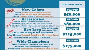 ZitatSlept in my new Chameleon (wide version) this past weekend for the first time. Was wonderful!!! Would buy this hammock over and over...no calf ridge and no shoulder squeeze. I am 6'2" 230 lbs with wide shoulders. Was hoping the peak bags would replace the shelf that I so love on my Blackbird and they did not disappoint. This is my new favorite...Thank you Dutch for a wonderful product and congrats on a great Kickstarter campaign.
