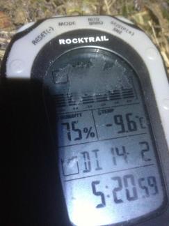 Minus 9,9. Wetterbericht stimmt. Leider stimmt die angezeigte Zeit nicht, die werde ich (nicht jetzt in der Kälte, sondern später mal im Warmen) korrigieren müssen.