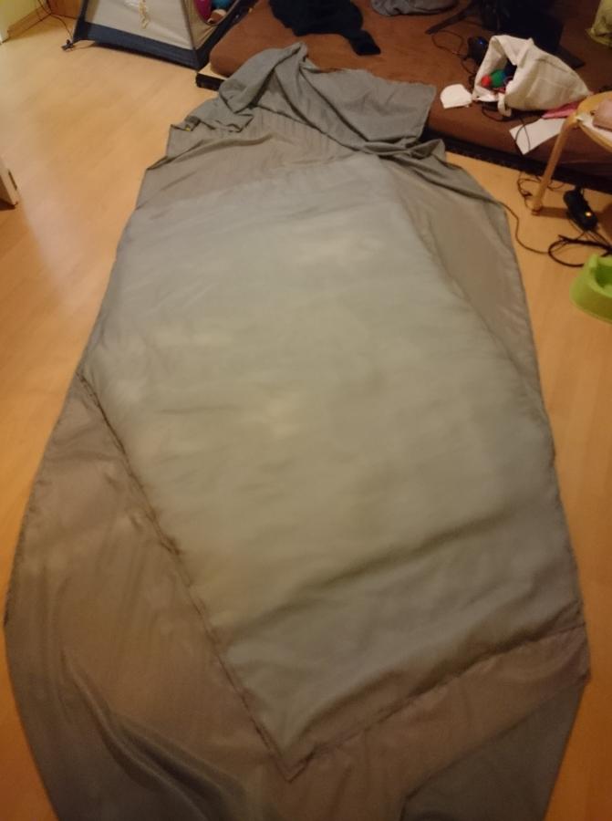 - eine weitere Schicht Apex auf die gleichen Abmessungen zugeschnitten, hier aber oben und unten (Kopf und Füße) jeweils nochmal etwa 30 cm weggenommen um Gewicht zu sparen