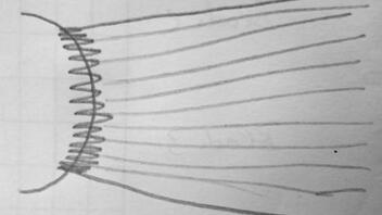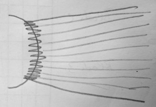 - Apex auf die Stoffbahn gelegt, die überstehenden Abschnitte weggeschnitten