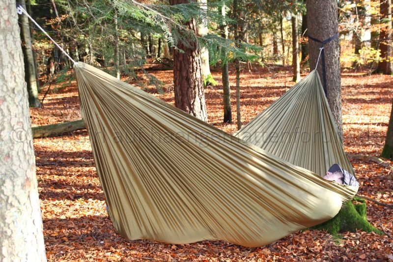 Meine besten Aufnahmen habe ich ohne Fotomodell gemacht. Als ich einige Double Layer Hängematten mit Isomatte fotografieren wollte, habe ich festgestellt, dass die Isomatte die Hängematte schön offen hält und für eine runde Form sorgt, die nicht von der Hängematte ablenkt.