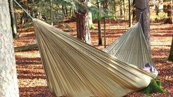 Bei der Verwendung eines Selbst- oder Fernauslösers steigert sich der Arbeitsaufwand noch einmal deutlich. Ich fotografiere ja meist nicht nur eine Hängematte, sondern 10 :o Und dann ändere ich auch Details wie mit/ohne Ridgeline oder tausche die Aufhängungen aus. Derzeit dauert das meist 2-3 Stunden pro Shoot (Ergebnis: wenn's gut läuft 10 brauchbare Fotos...). Wenn ich dann noch mit Stativ arbeite, und ständig in die und aus der Hängematte steigen muss, brauche ich wohl noch mindestens eine Stunde länger.