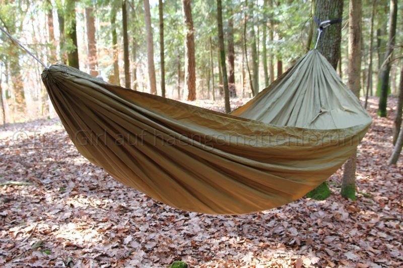• Was mögliche "Füllungen" oder Dummies in der Hängematte betrifft: ich hatte auch schon darüber nachgedacht mir einen länglichen Sack zu nähen um ihn mit einem Schlafsack zu füllen der dann die Rolle des Fotomodells übernimmt. Mein Schlafsack ist leider knallblau, was nicht so gut ins Foto passt. Und Bettdecken sind mir zu schwer und voluminös um sie zusätzlich zur Ausrüstung im Rucksack mitzuschleppen.