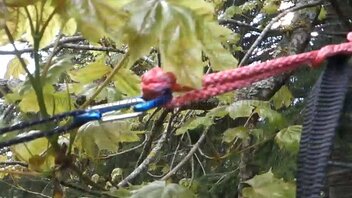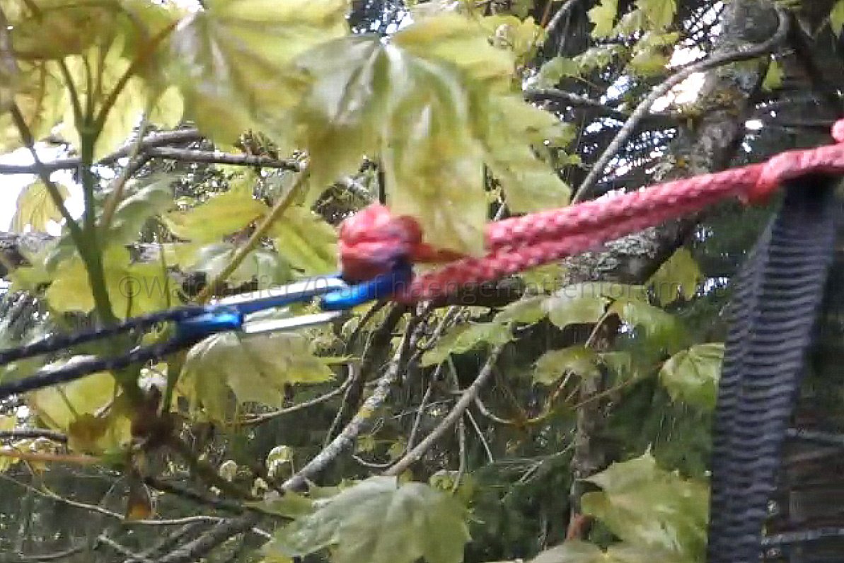 Tarp wird mit einem Minikarabiner am Baumgurt befestigt.
