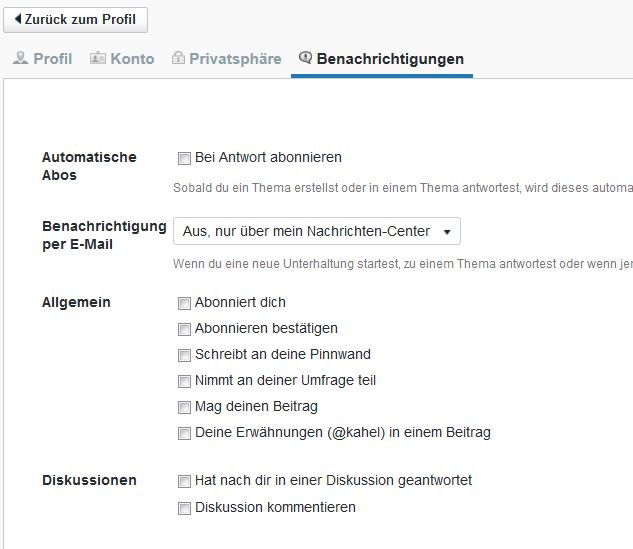 • Das Zauberwort hier heißt "Konfiguration" in Deinem Profil unter "Benutzereinstellungen" kannst Du festlegen bei welchen Ereignissen Du benachrichtigst werden willst. :yes: [ATTACH=CONFIG]n6659[/ATTACH]