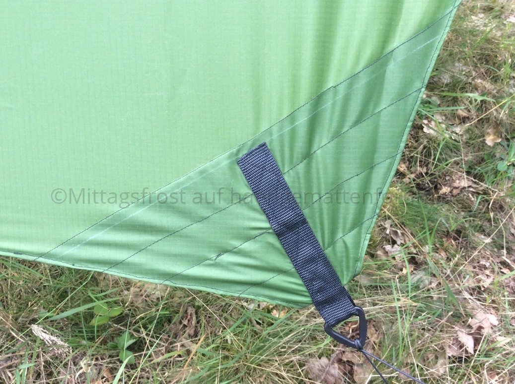 Als Zeichen der Anerkennung und Dankbarkeit für die tolle Anleitung habe ich das Tarp nach den beiden Damen benannt. Hier seht Ihr das grüne Sally-Jelly-Tarp!
