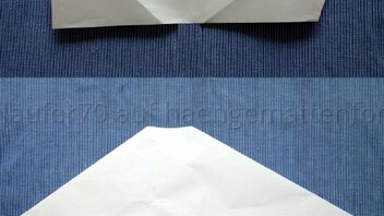 • Dadurch ist die Naht an den Seiten länger geworden und hat – trotz der geringeren Abschrägung – eine ähnliche Länge, wie wenn ich bei geradem Schnitt unten 20% abgeschrägt hätte.