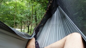 • Ich hatte für meine meist um die 340cm langen, selbstgenähten Hängematten noch kein Moskitonetz.
