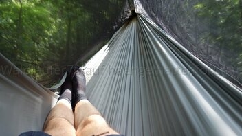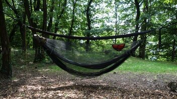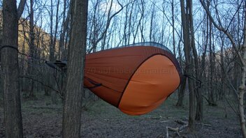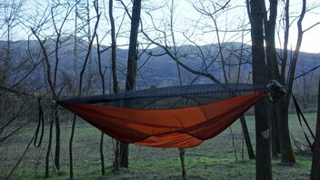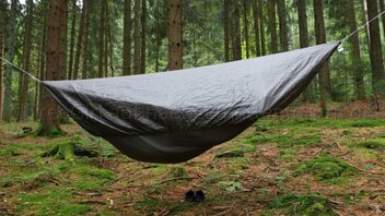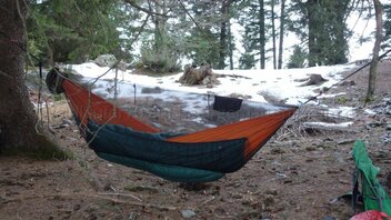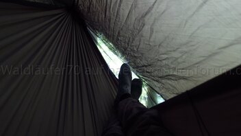 • Habe heute - nach zwei Nächten im Wald - nochmal die Hängematte mit dem Moskitonetz und dem Underquilt ausprobiert.