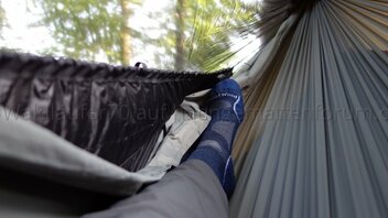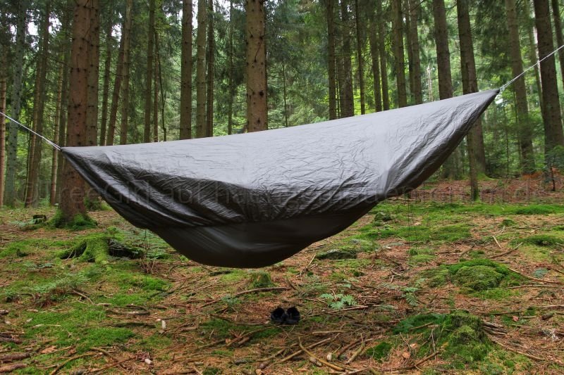 Underquilt wird unter dem Netz am Kopf- und Fussende der Hängematte eingehängt