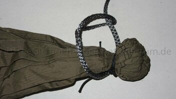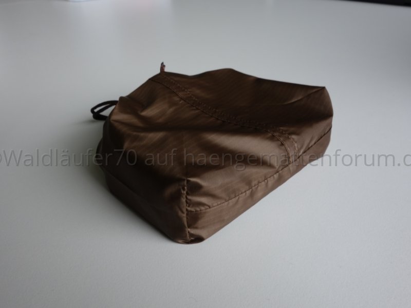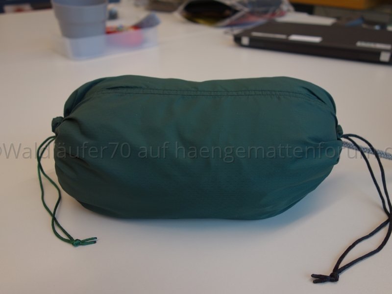 Für die Aufhängung habe ich mir einen separaten Beutel gemacht. Dieser hat aber - bei Bedarf - auch noch im Beutel der Hängematte Platz.