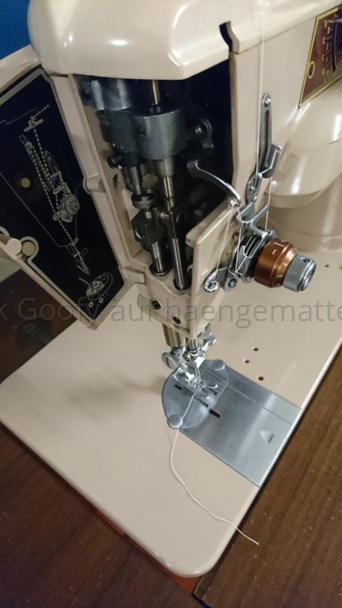 Die Maschine ist in einen kleinen Tisch eingebaut und ist extrem gepflegt, nicht ein Kratzer. Bin auch total begeistert von der Mechanik die unter der Haube steckt. Dann war noch jede Menge Zubehör dabei und zwei Kartons voll Garn zusätzlich. Selbst das Benutzerhandbuch sieht aus wie neu. Glaube da hab ich wirklich einen Glicksgriff gemacht und werde hoffentlich lange Spaß daran haben. Nochmal vielen Dank für deine Beratung hier.