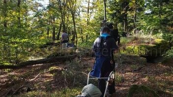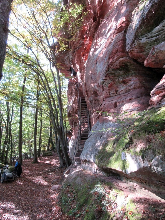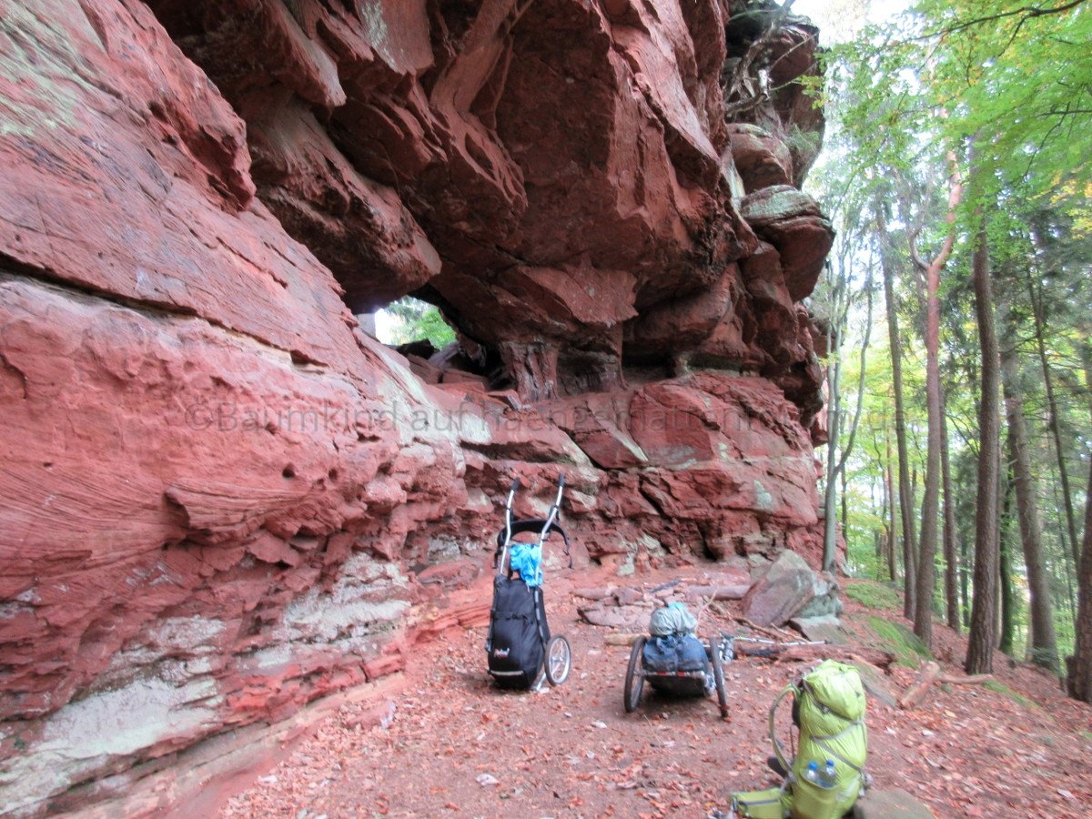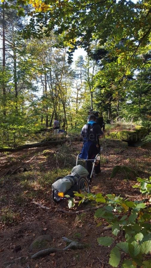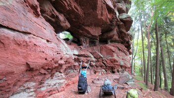 Von der Froesnburg ging es über Stock und Stein weiter zum Zigeunerfels. Auch dies war ein Weg, von dem ich gesagt hätte, dass er mit Wanderwagen nicht machbar war. Doch mit gelegentlicher Hilfe von [USER="211"]Dios Mios[/USER] ließ sich jeder Fels problemlos überwinden.