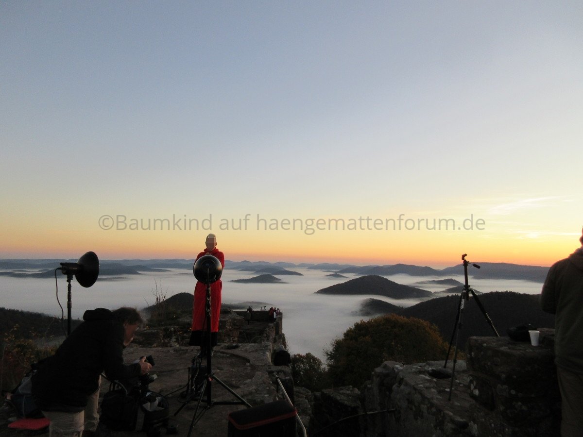 Oben auf der Burg angekommen verstand ich, was Fotografen (mitsamt Model) anzog: ein grandioser Blick über ein noch grandioseres Nebelmeer.