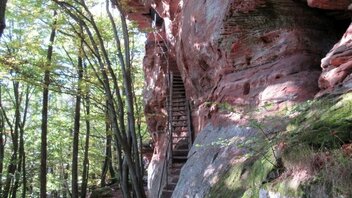 Auf der Hohenbourg wurde mir schnell klar, dass es dieses Super-Sonder-Panorama mit Morgennebel nur auf der Weglnburg gibt. Nach der Inspektion der Burgruine ging es weiter zum Löwenstein, und von dort aus Richtung Fleckenstein.