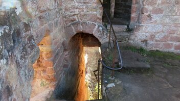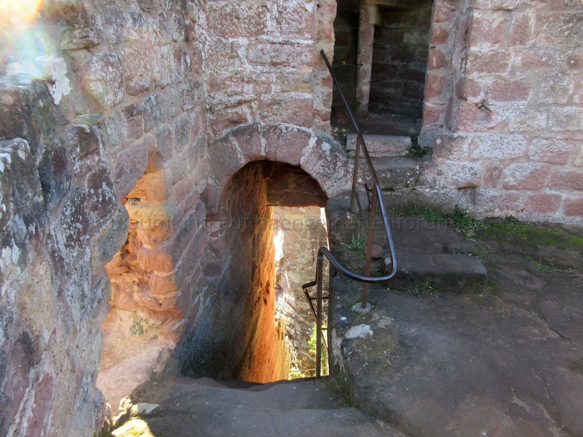 Im Café der Burg Fleckenstein sind wir eingekehrt und haben unsere Wasservorräte aufgefüllt, bevor wir zur Froensburg weiter zogen.