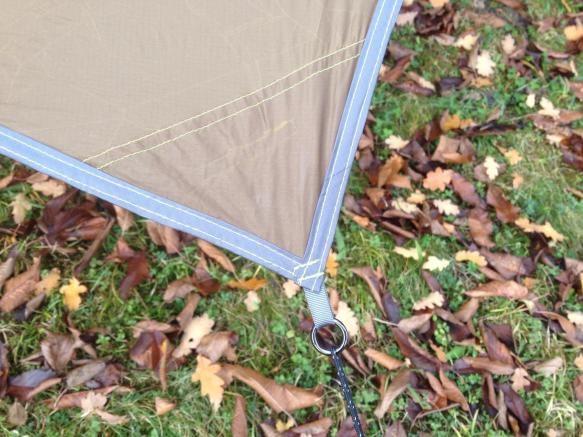 Der Stoff macht dennoch einen guten Eindruck und lässt angenehm Licht durch (ich mag es, wenn es unter dem Tarp nicht so dunkel ist).