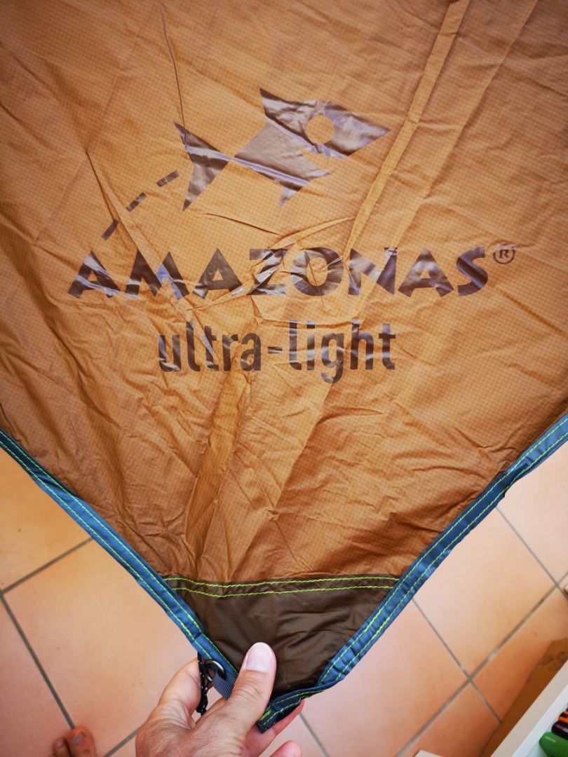 ich habe inzwischen auch mein neues Amazonas Adventure Tarp aufgehängt. Es ist wirklich sehr leicht und klein verpackbar. Auf meiner Waage werden für das gesamte Paket incl. Packsack und Heringen sogar nur 408gr angezeigt.