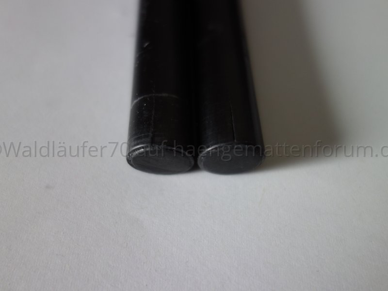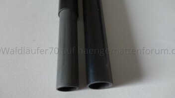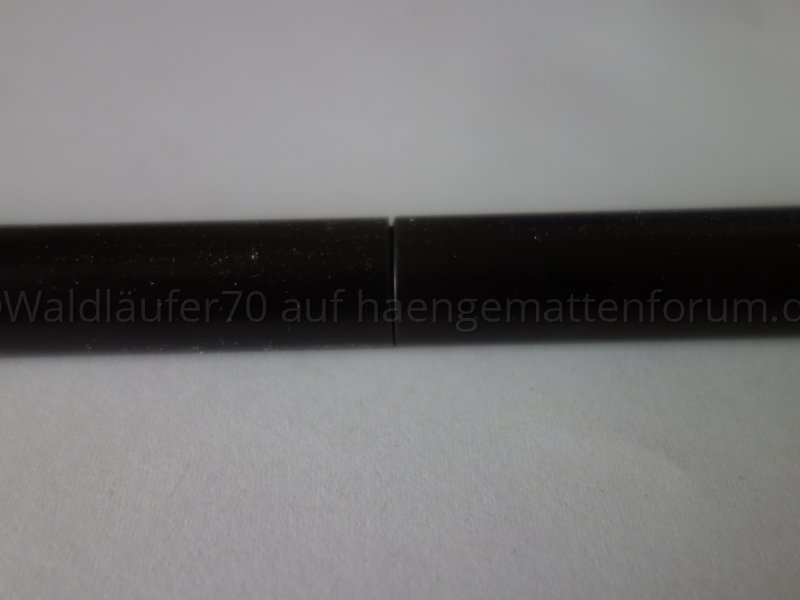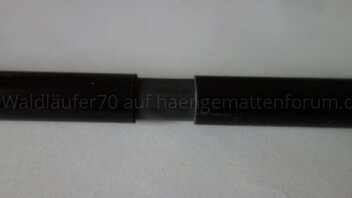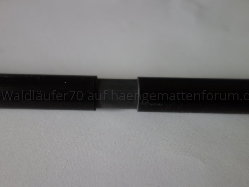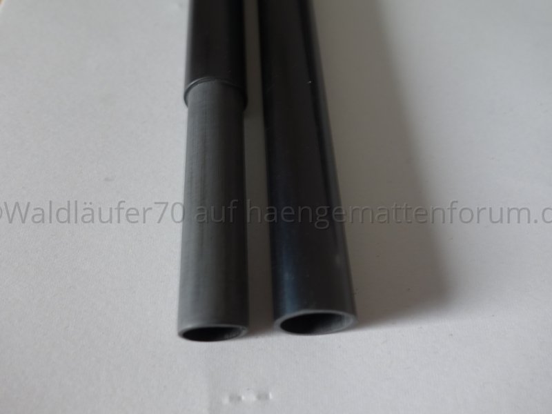 Die Steckverbindung passt recht gut. Ich habe das Innenrohr mit Schleifpapier eine Spur dünner gemacht. Nun lässt es sich ausreichend leicht ineinander schieben, die Verbindung ist aber immer noch stärker als die Schwerkraft, die auf einen Teilstab wirkt. Sprich, die zusammengesteckten Stäbe fallen - anders als die oben gezeigten Alu-Rohre - allein durch die Schwerkraft nicht auseinander.[ATTACH=JSON]{"alt":"Klicke auf die Grafik f\u00fcr eine vergr\u00f6\u00dferte Ansicht Name: resized_DSC05510.jpg Ansichten: 1 Gr\u00f6\u00dfe: 188,5 KB ID: 40560","data-align":"none","data-attachmentid":"40560","data-size":"medium"}[/ATTACH]