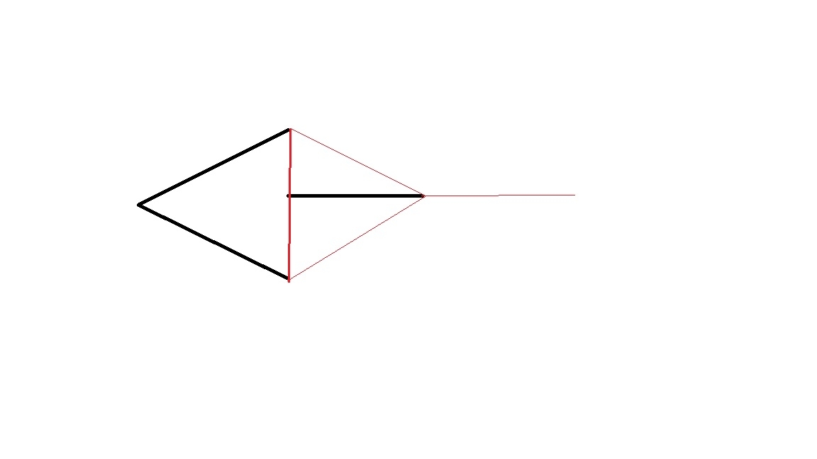 Eigentlich müßten es auch 4 Stangen sein, sonst kann man die einzelne Stange ja nicht richtig befestigen, aber der Vorteil dieser Konstruktion wäre, dass man beim Diagonalliegen ganz viel Kopffreiheit hat; zumindest, wenn man die Abspannung an die Seite mit dem Dreieck und nicht, wie oben in der Zeichnung, an die einzelne Stange macht. -