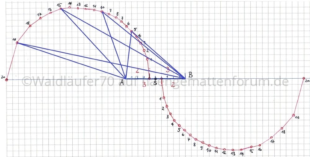 So, jetzt bring ich noch einen Parameter ins Spiel: den Abstand der Hängemattenenden zu den Häken.