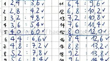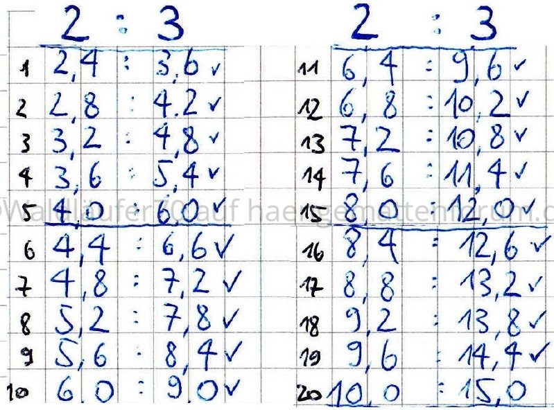 Tatsächlich verhält es sich bei einem gleich bleibenden Verhältnis von 2:3 so wie in der folgenden geometrischen Konstruktion (Zahlenpaare im Verhältnis 2:3 rechts daneben):