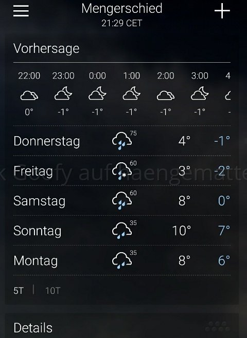 Die aktuelle Wetterprognose von meiner App fällt nicht ganz so schlecht aus. Aber matschig ist in jedem Fall versinke momentan täglich bei meiner Runde im Wald, selbst die Forstwege sind komplett durchgeweicht