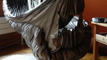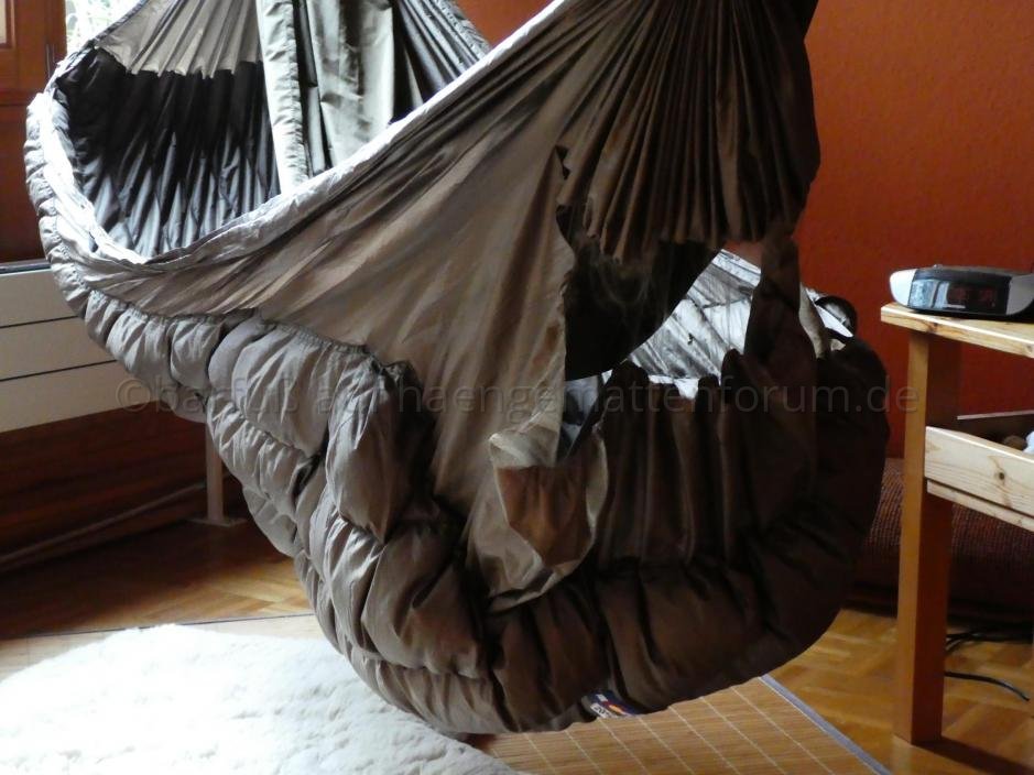 Dieser kam nicht, aber nach dem ca.4. Mal aufstehen und wieder in die HM legen, passierte es mir: ich habe nicht die HM sondern den Wooki getroffen und obwohl ich mich immer vorsichtig in die HM setze, kam ich bis auf den Boden und statt dass das blöde Gummiband an der Aufhängung reißt, ist der Stoff gerissen. Das Gummiband hat sich nur gedehnt, aber gehalten. So ein Sch....