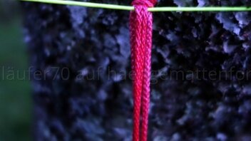 In einem weiteren Video (Video 6) stellt er auch den «Grapplers Hitch» vor, den [USER="14"]Mittagsfrost[/USER] an anderer Stelle schon einmal ausführlich vorgestellt hat. Ob man nun den «Evo Loop» als «Ultralight Hammock Suspension Carabiner» oder den «Grapplers Hitch» bevorzugt, ist vermutlich schlicht Geschmackssache. Vielleicht lässt sich der «Graplers Hitch» etwas leichter mit Handschuhen bedienen(?), dafür muss er fix an eine Schlaufe geknotet werden und ist dann nur abnehmbar, indem man ihn wieder ganz öffnet.