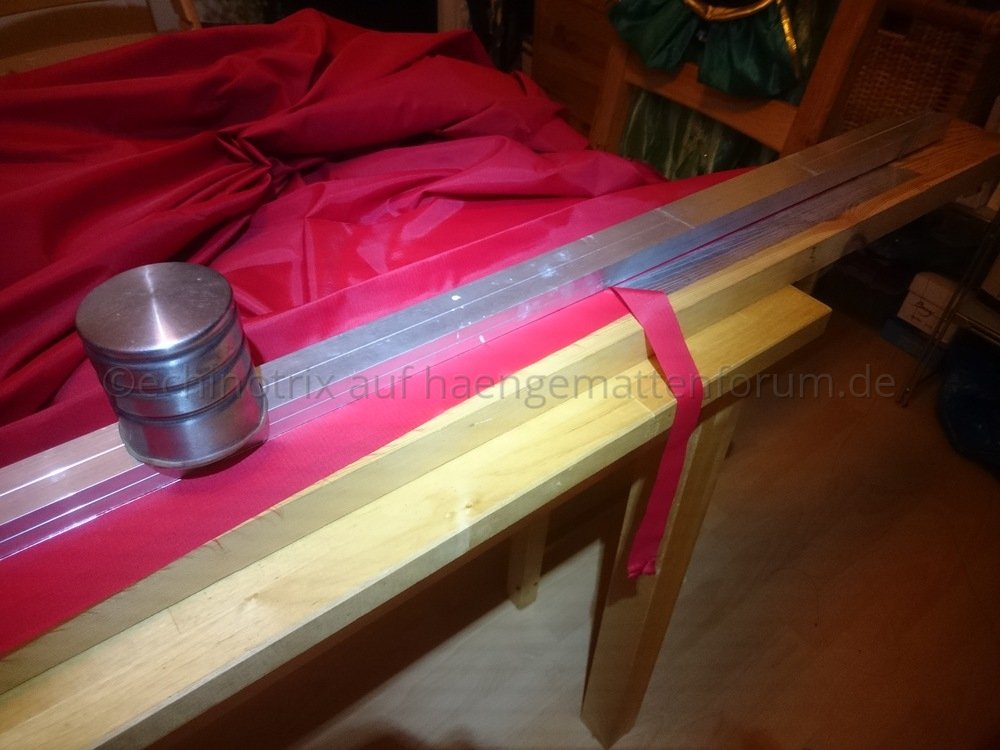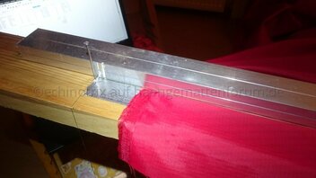 - Dann eine Aluschiene an den Nägeln anlegen und den Stoff mit dem Lötkolben abschneiden.