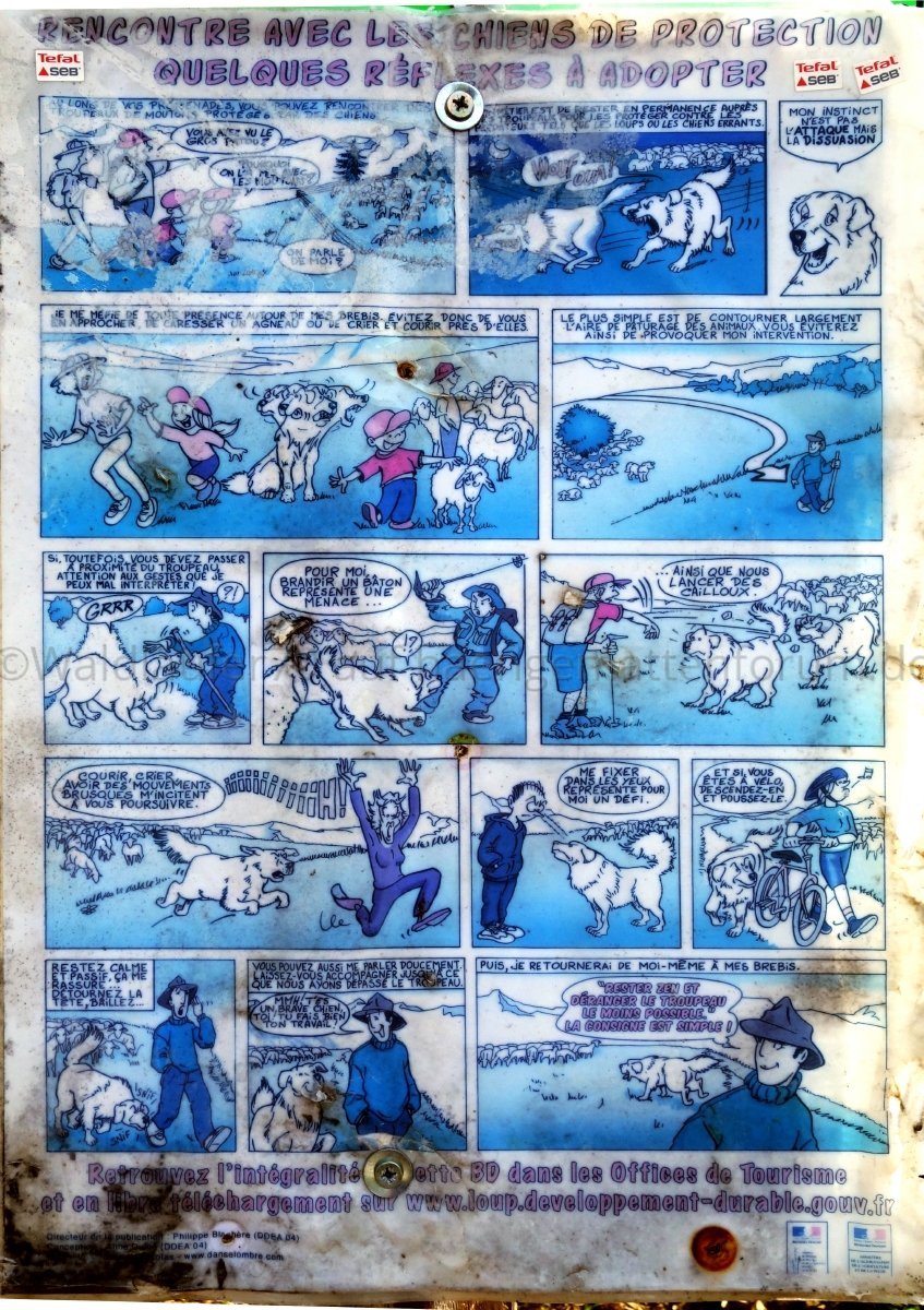 Nur kurze Zeit später passierte ich eine Herde Schafe und es dauerte nur einen Moment, bis zwei kräftige Pyrenäenberghunde mich entdeckt hatten und auf mich zu rannten. Ich trug das Ganze – dank der beiden Plakate bestens vorbereitet – mit Fassung und wusste nun, wie ich mich zu verhalten hatte. Erleichternd kam noch dazu, dass die Schafherde zusammen mit den Hunden mit einem grossen Elektrozaun eingepfercht waren. Glück gehabt! ![]()