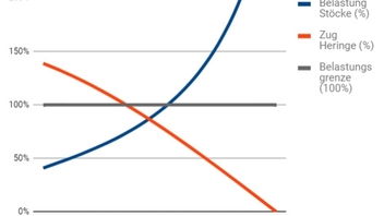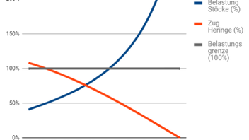 - Zur Erinnerung: Der Stock ist im 90°-Winkel abgespannt, durch die Abspannung erfolgt kein Eintrag einer Längskraft auf den Stock!