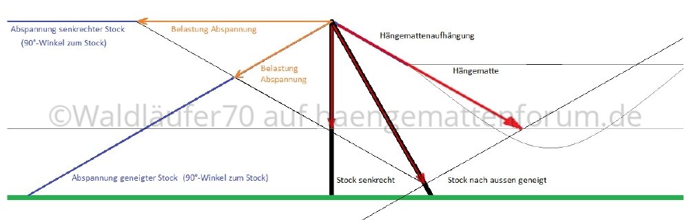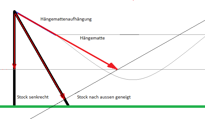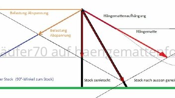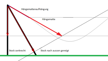 - Hängemattenaufhängung wie auch Abspannleine bewirken beide eine Längskraft, die den Stock belastet.