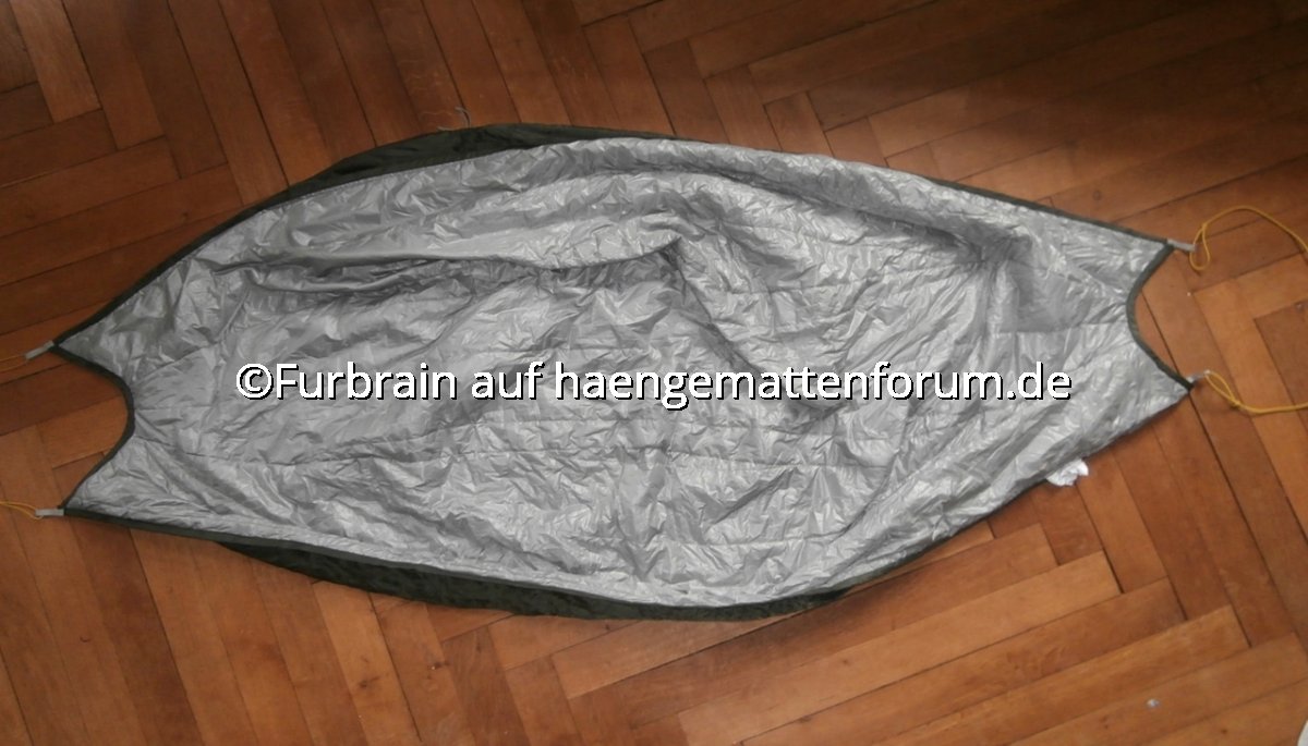 • Wie an anderer Stelle angekündigt hier noch ein paar Gedanken meinerseits zu dem guten Stück. Grundsätzlich kann ich mich dem gesagten voll anschließen. Gekauft habe ich es Ende letzten Jahres als Ergänzung zu einer kurzen Amazonas Adventure Hängematte, Ziel war es zunächst nur einen leichten UQ zu haben um die Hängematte auch bei einer Tagestour im Herbst/Winter/Frühling nutzen zu können. An den Einsatz mit einer längeren Hängematte habe ich dabei nicht gedacht.