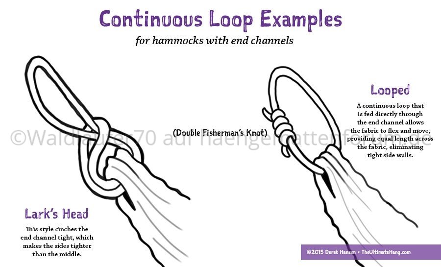 Ein Continuous Loop ist eine geschlossene Schlaufe, die häufig für die Aufhängung der Hängematte (Schlaufen an den Hängematten-Enden) verwendet wird.