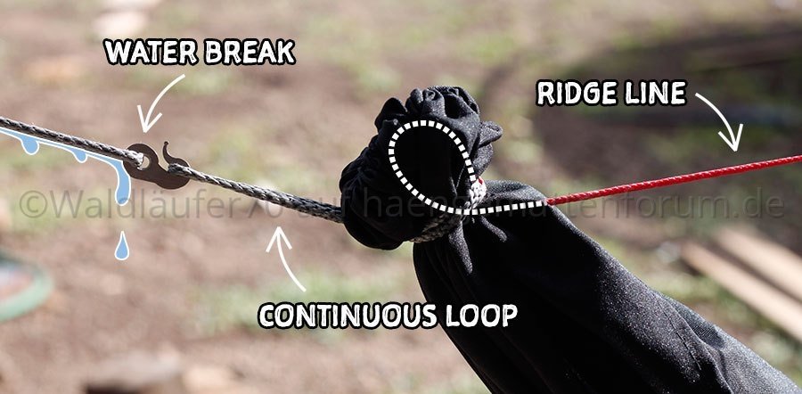 Natürlich kann man auch eine «gewhippte» Hängematte mit einem Continuous Loop aufhängen und ist dann nicht auf einen Tunnelzug angewiesen:
