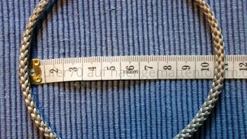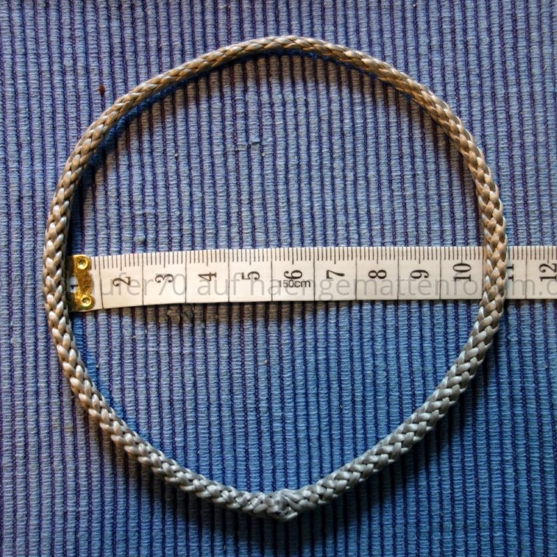 Ich habe das Verfahren mit dem «Locked Brummel Splice» gestern anlässlich eines Hängematten-Workshops mit den Teilnehmern gleich ausprobiert. Ich habe dabei die folgenden Masse verwendet, die einen knapp 16cm langen Continuous Loop (mit ca. 10cm Durchmesser) ergeben: