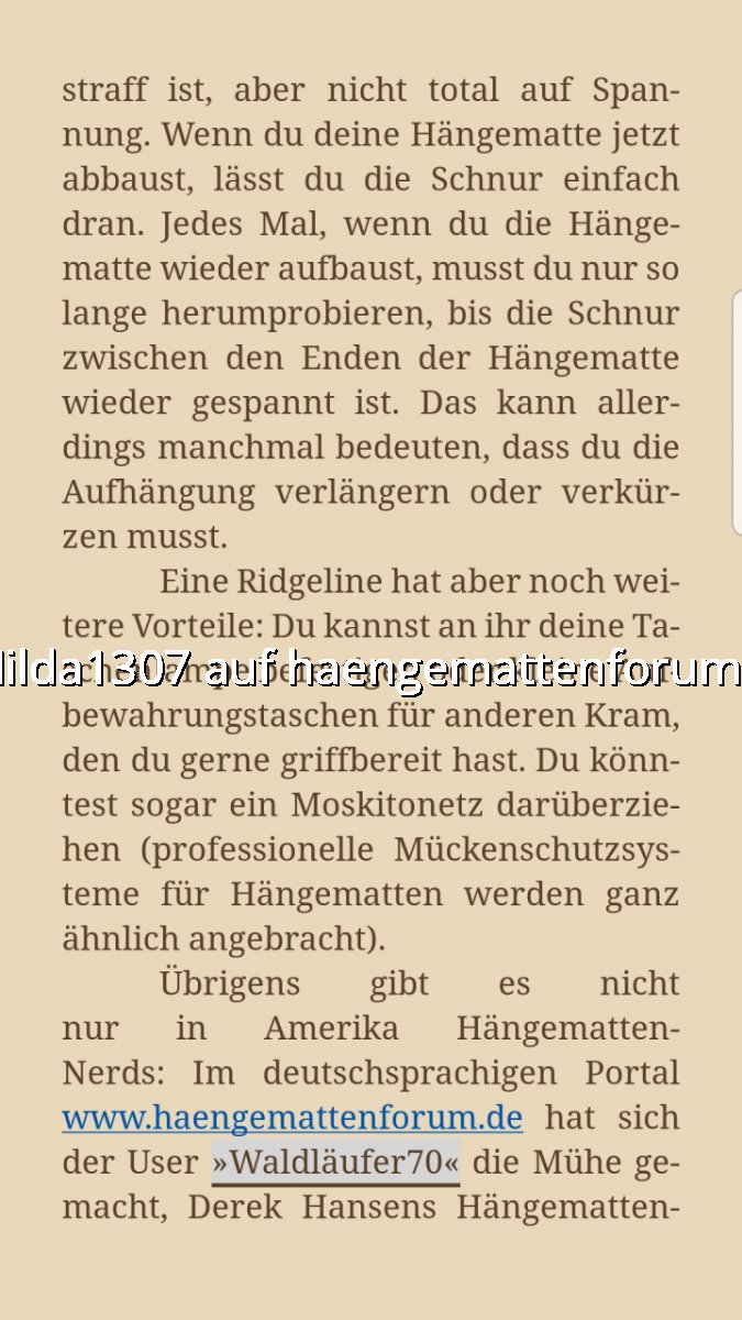geschmökert. Dort wird auch das Thema Hängematten angeschnitten und auf Waldläufer70 und seinen Rechner Bezug genommen: