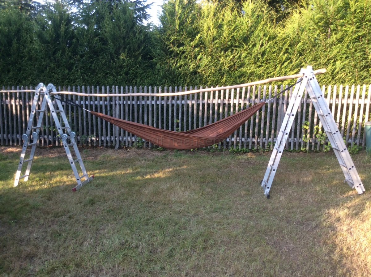 Zu den Leitern, ich hatte meine so aufgestellt wie Hammock Fairy empfiehlt. Die ist aber etwas anders, ich mache mal ein Foto wenn es wieder hell ist. Für draußen im Garten finde ich die gut. Ich hatte die Aufhängung (Gurte) bei dem Gelenk festgeknotet. Allerdings habe ich die Leiter nicht mir Firststange benutzt sondern mit einem Spanngurt nach außen abgespannt. Das ist ja soweit ich das verstanden habe bei dir nicht gewünscht.