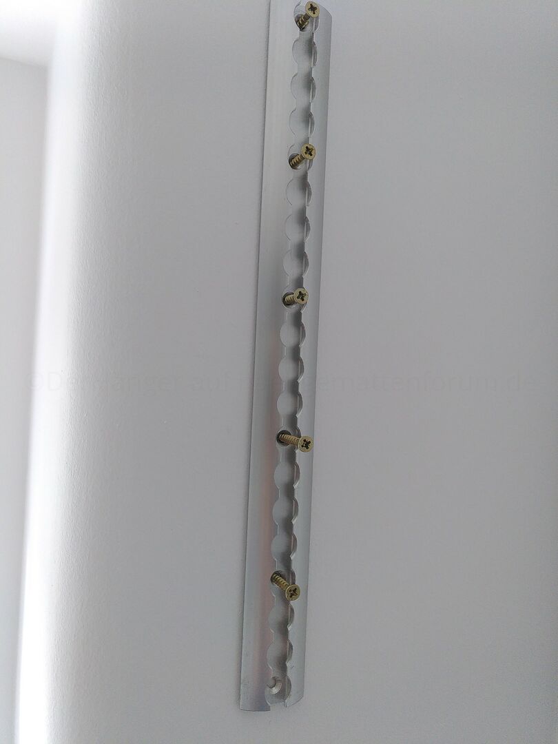 Wegen der Dübelproblematik. (50er Jahre Wand, bohren ohne Schlagbohr auch mit normalen HSS Spiralbohrern kein Problem!!) muss ich nacharbeiten, ansonsten hält das bei mir bisher gut.