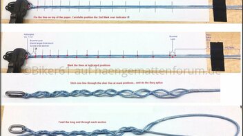 Die in der Anleitung von Nr.1 gezeigten Abmessungen lassen sich nicht 1:1 Übertragen auf Nr. 4 UHMWPE-Seil, Amsteel 7/64