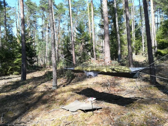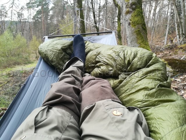 Eine neue Bridge Hammock, ok - aber festzurren? Das ist ja eher ein an Seilen gespanntes Bett oder Treetent, für mich ist das nichts. Ohne sie fest zu zurren sieht das für mich jedenfalls wie ein klassisches flipover-device aus.