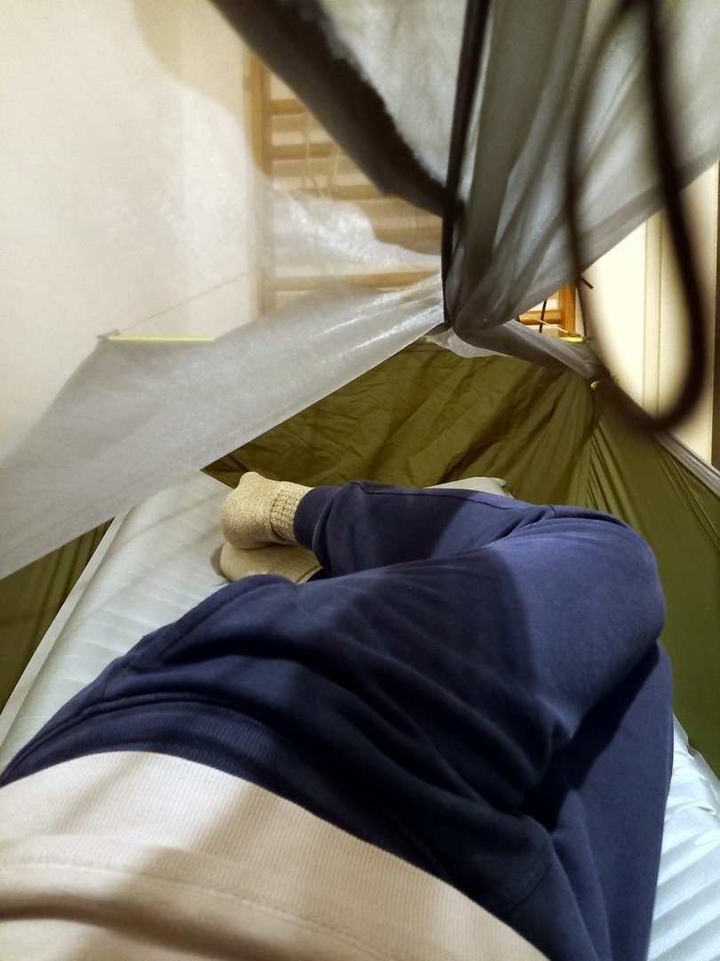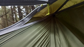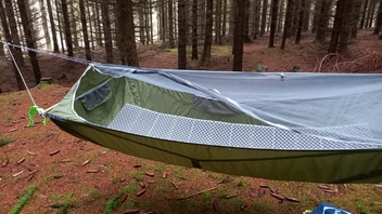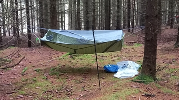• Die Wände sind etwas hoher an den Kopf- und Fußenden bei der Skylite als bei einer Ridgerunner. Die Wände in der Mitte der Skylite sind deutlich höher, was mir passt, weil ich auf einer Xtherm Isomatte mit einer Dicke von 6,5cm schlafe. Allgemein sehe ich viel mehr aus Bridge Hammock, das Liegegefühl ist ähnlich wie in einem Feldbett. Ich kann wahlweise die Skylite sehr locker aufhängen, sodass das Liegegefühl wieder wie eine GE-Hängematte ist.